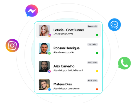 Centralize todas as conversas do WhatsApp e Instagram em um único painel, fácil de acompanhar.